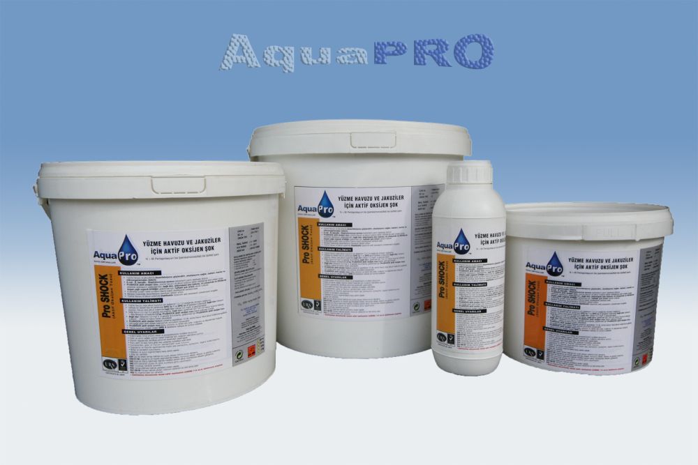 AquaPRO ProSHOCK bağlı klor ve koku giderici, Yüzme havuzu ve masaj havuzu sularında kullanılan aktif oksijen(MPS) bazlı haftalık ŞOK oksitleyici.(Klorsuz ŞOKLAMA ajanı)